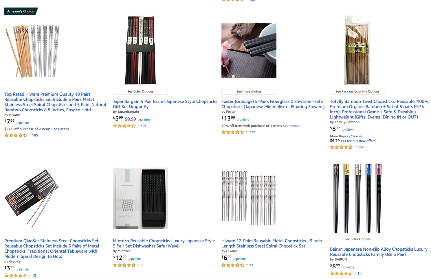 For example, if you make glass chopsticks and put the term “glass chopsticks” you might find that “reuseable chopsticks” comes back. When you put this into Amazon you’ll get all sorts of new ideas.